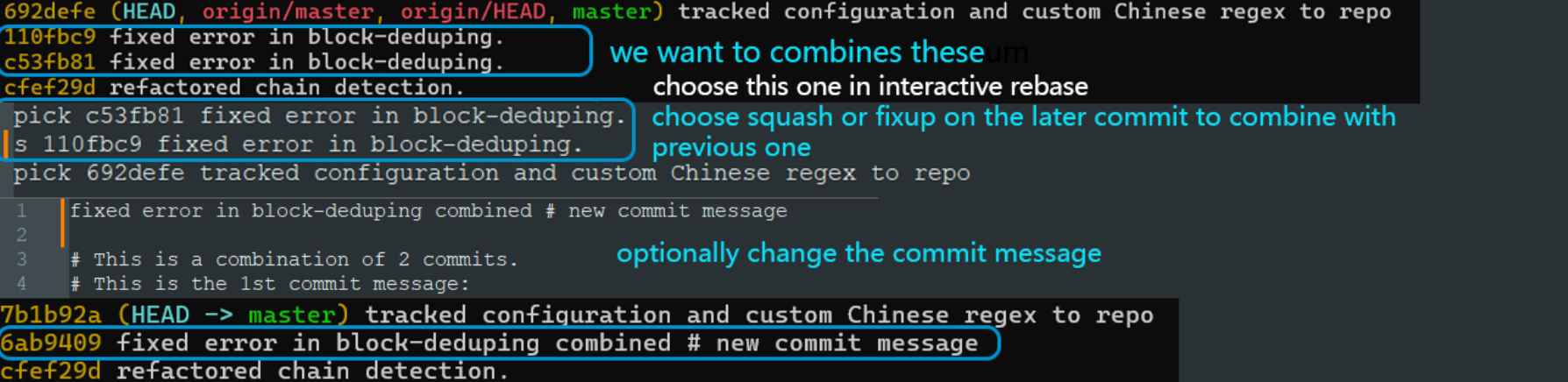 Using squash on the later commit to combine with the previous one (top one on interactive rebase)