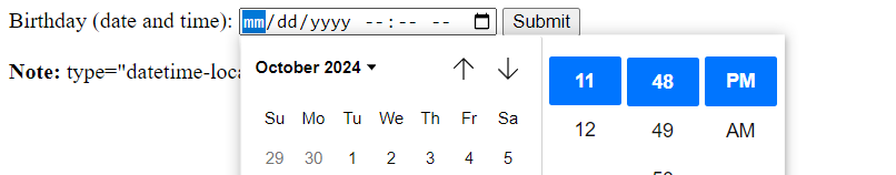 Datetime-local - browser will display and date-time selector