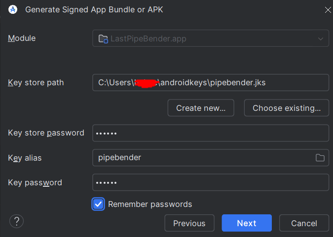 Building signed APK require keys, the keys will be located in ~/androidkeys/app.jks